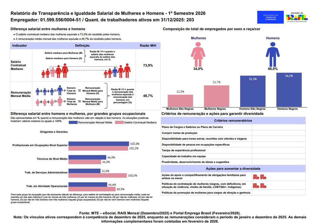 Relatório de Transparência e Igualdade Salarial - 1º Semestre 2026